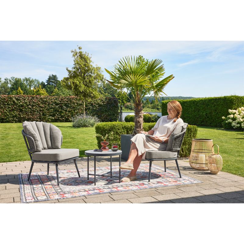 - Das Set besteht aus zwei Einzelsesseln und einem Beistelltisch – perfekt für gemütliche Zweisamkeit.