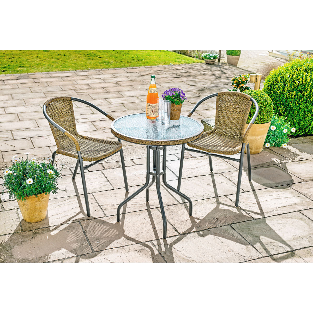Mit dem Haveson Stapelstuhl Tobago holen Sie sich ein robustes und stilvolles Möbelstück in Ihren Garten. Der Stuhl ist stapelbar und somit platzsparend zu verstauen. Die braune Kunstrattan-Sitzfläche sorgt für ein angenehmes Sitzgefühl, während das silberne Stahlgestell für die nötige Stabilität sorgt.