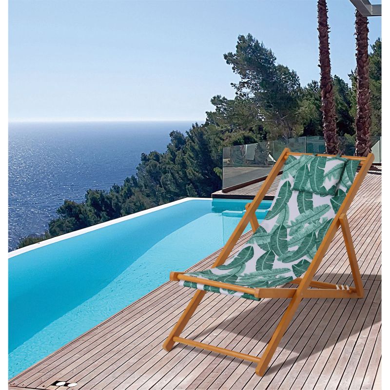 Haveson Strandstuhl Palmenblatt Hartholz mit Kopfkissen klappbar