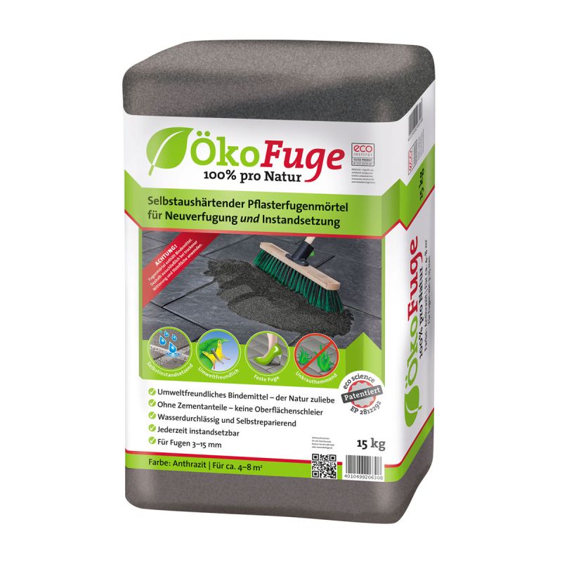 Mit dem ÖkoFuge Fugenmörtel in Anthrazit setzen Sie nicht nur optisch ansprechende Akzente in Ihrem Garten, sondern tun auch etwas für die Umwelt. Der Mörtel besteht aus Gesteinskörnung und umweltfreundlichen Bindemitteln aus nachwachsenden Rohstoffen. Zudem ist er wasserdurchlässig, unkrautkemmend und selbstreparierend.